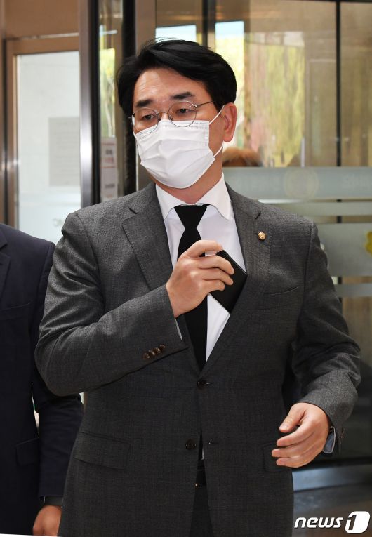 (서울=뉴스1) 사진공동취재단 = 박용진 더불어민주당 의원이 26일 오후 고 이건희 삼성그룹 회장 빈소가 마련된 서울 강남구 삼성서울병원 장례식장에 들어서고 있다. 2020.10.26/뉴스1
