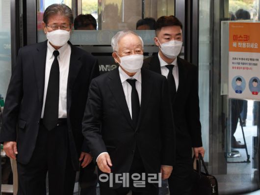 [사진공동취재단] 손경식 한국경영자총협회 회장(왼쪽)이 26일 오후 고 이건희 삼성그룹 회장 빈소가 마련된 서울 강남구 삼성서울병원 장례식장에 들어서고 있다.