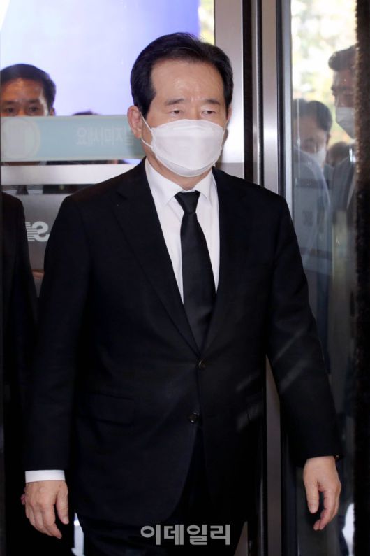 [사진공동취재단] 정세균 국무총리가 26일 오후 고 이건희 삼성그룹 회장 빈소가 마련된 서울 강남구 삼성서울병원 장례식장으로 들어서고 있다.