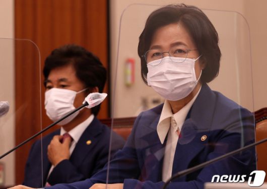 추미애 법무부 장관이 26일 서울 여의도 국회에서 열린 법제사법위원회의 법무부, 대법원, 감사원 등에 대한 종합국정감사에 출석해 의원 질의에 답변하고 있다. /사진=뉴스1. |