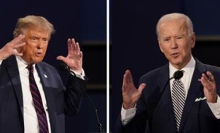 미 대선 첫 TV토론 맞대결 벌이는 트럼프·바이든. 클리블랜드 AP=연합뉴스 |