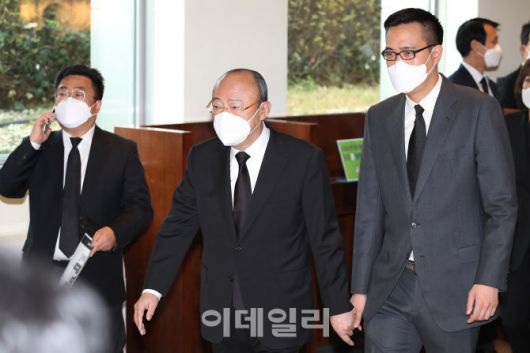 [사진공동취재단] 김승연 한화그룹 회장이 26일 오후 서울 강남구 서울삼성병원 장례식장에 마련된 고 이건희 삼성그룹 회장 빈소에 조문을 마친 후 나서고 있다.