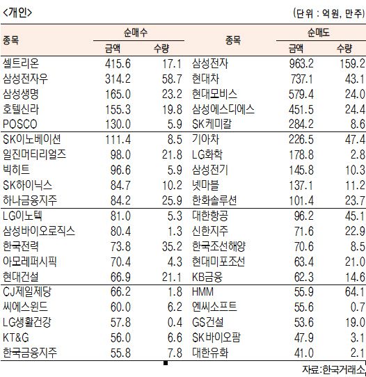 [표]유가증권 기관··외국인·개인 순매수·도 상위종목(10월 26일-최종치)
