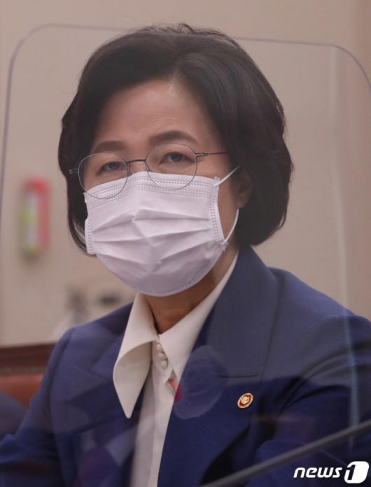 추미애 법무부 장관이 26일 서울 여의도 국회에서 열린 법제사법위원회의 법무부, 대법원, 감사원 등에 대한 종합국정감사에 출석해 의원 질의에 답변하고 있다./사진=뉴스1 |
