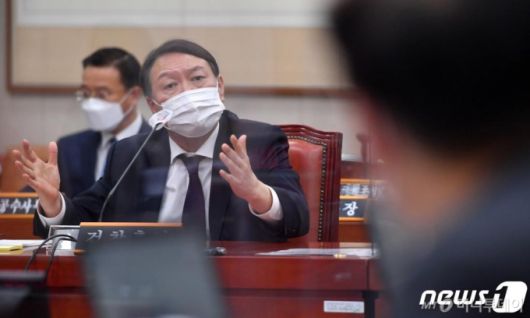 윤 총장은 지난 22일 대검찰청 국정감사에서 퇴임 후 정치를 할 생각이 있느냐는 질문에 "퇴임하고 나면 우리 사회와 국민을 위해 어떻게 봉사할지 그런 방법을 천천히 생각해보겠다"고 답했다. 정치도 그 방법에 포함되느냐는 질문에는 "말씀드리기 어렵다"고 즉답을 피해 정치권 진출에 여지를 줬다는 해석을 낳았다.