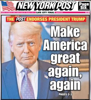 뉴욕포스트는 이날 사설에서 “우리는 팬데믹(전염병의 세계적 대유행) 이전의 폭발적인 일자리 창출과 임금 상승, 보편적 번영으로 돌아갈 수 있다. 우리는 경제적 자유와 기회를 얻고 검열을 거부할 수 있으며, 끔찍한 한 해를 뒤로 하고 미국을 또다시 위대하게 만들 수 있다”라고 밝혔다.
