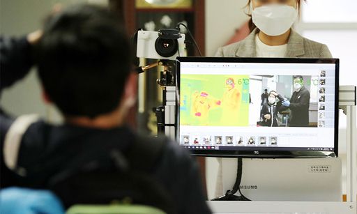 지난 20일 오전 대전 한 초등학교에서 학생이 등교하며 체온을 측정하고 있다. 뉴스1 |