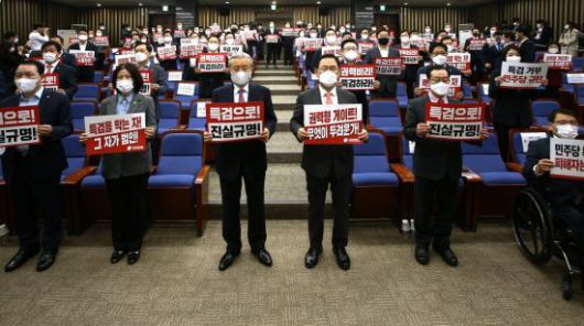 [아시아경제 김혜민 기자] 국민의힘이 문재인 대통령의 국회 시정연설 불참 가능성을 시사하며 정부·여당을 향해 라임·옵티머스 사모펀드 특검 수용을 압박하고 나섰다.