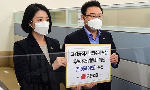 국민의힘은 이날 자당 몫 공수처장 후보추천위원으로 대검찰청 차장 출신 임정혁 변호사와 대한법률구조공단 이사장을 지낸 이헌 변호사를 선정하고 국회 의안과에 명단을 제출했다.