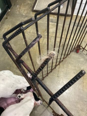 밤 9시 20분, 녀석은 살겠다고 나오다 쇠창살이 뒷발 허벅지와 배 사이에 꽂혀버렸다. 그후 곰순이는 아파서 계속 울부짖으며 발버둥을 쳤다. 그럴수록 이미 꽂힌 철근은 더욱 깊게 파고들었다.