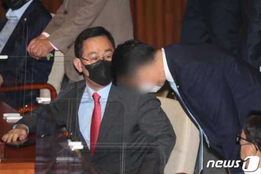 주호영 국민의힘 원내대표(왼쪽)가 28일 오전 서울 여의도 국회에서 열린 제382회 국회 제10차 본회의에서 문재인 대통령 시정연설에 참석했다. /사진=뉴스1. |
