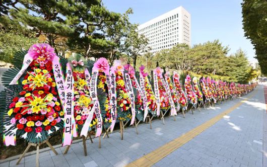 화환 행렬은 지난 19일 한 시민이 윤 총장을 응원하는 뜻에서 보내기 시작한 것에서 촉발됐다. 22일 윤 총장의 국정감사 후 화환이 더 늘어났다. 현재 300개 이상의 화환이 대검 정문에서 대법원과 서울중앙지검까지 줄지어 있다.