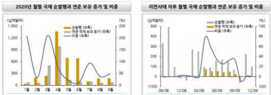 조 연구원은 "2021년 PD 및 시장참여자들의 연준 국채 매입량 컨센서스는 0.55~0.80조달러"라며 "2조 달러 수준의 5차 부양책을 고려했을 때 국채 발행 부담감은 제한적일 것"이라고 내다봤다.