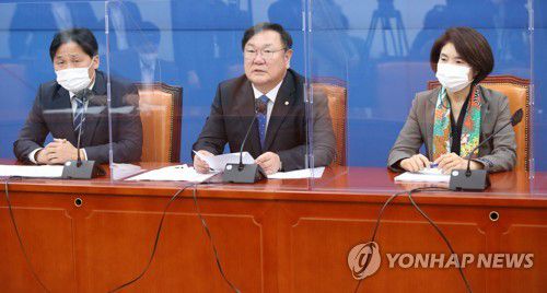 (서울=연합뉴스) 고동욱 기자 = 더불어민주당은 28일 라임·옵티머스 사건 수사와 관련, "검찰에 맡겨야 한다"며 국민의힘의 특검요구를 거듭 일축했다.