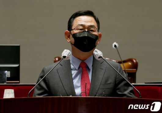 주호영 국민의힘 원내대표가 28일 국회에서 열린 의원총회에서 발언하고 있다. /사진=뉴스1. |