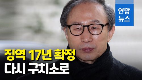 (서울=연합뉴스) 회사 자금을 횡령하고 삼성 등에서 거액의 뇌물을 챙긴 혐의로 재판에 넘겨진 이명박 전 대통령에게 징역 17년이 확정됐습니다.