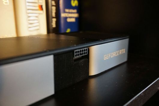 PCWorld가 리뷰한 파운더스 에디션은 엔비디아가 공기흐름에 도움을 주기 위해 노치를 없앤 소형 맞춤형 PCB를 사용한다. 지금까지 공개된 다른 FE 카드처럼 엔비디아가 독자 개발한 12핀 커넥터를 통해 전력을 공급받는다는 의미다. 엔비디아는 (짧고, 보기 흉한)어댑터를 기본 제공한다. 그러나 더 강력한 RTX 30 시리즈 파운더스 에디션 카드와 다르게, 12핀 커넥터가 45도 각도의 수직 방향이 아닌, 카드 가장자리 중앙에 수평으로 누워있다. 케이스 파워 서플라이 가리개의 배선 컷아웃이 GPU 아래라면 훨씬 더 나은 위치이다.