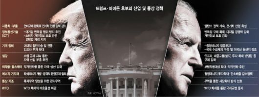 ◇누가 되든 자유무역주의로 회기 어려워=1일 KOTRA는 미 대선을 앞두고 트럼프와 바이든 두 후보의 경제·산업 정책을 분석해 우리 기업들이 취해야 할 당선자별 전략 방향을 제시했다. KOTRA는 “트럼프와 바이든 누가 당선되든 현재 사회·경제적 여건상 당장 자유무역주의로 회귀하기는 어려울 것으로 전망된다”고 강조했다. 트럼프가 재선에 성공할 경우 관세 부과를 무기로 삼아 수입 규제를 강화하는 전략을 유지할 것임은 물론 중국과의 무역분쟁도 지속될 것으로 예상했다.