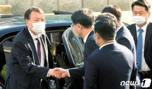 윤석열 검찰총장이 일선 검사들과 간담회를 갖기 위해 지난달 29일 오후 대전 고등검찰청·지방검찰청을 방문하고 있다./사진=뉴스1 |