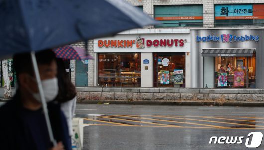 (서울=뉴스1) 안은나 기자 = 1일 서울 시내 던킨도너츠와 배스킨라빈스 매장 앞으로 시민들이 지나가고 있다. 던킨도너츠와 배스킨라빈스를 운영하는 던킨 브랜즈 그룹이 미국 외식기업 인스파이어 브랜즈에 매각된다. 거래액 규모는 113억달러(약 12조8198억원)이다. 2020.11.1/뉴스1coinlocker@news1.kr[© 뉴스1코리아(news1.kr), 무단 전재 및 재배포 금지]