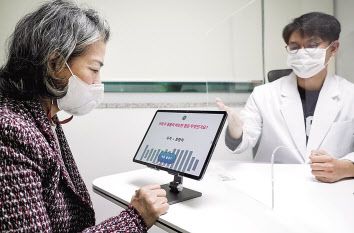 서울대학교 의과대학 의료진이 치매 선별 프로그램을 활용한 테스트를 진행하고 있다. [SK텔레콤 제공] |