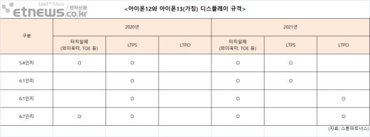 그러나 아이폰12에서 노선을 바꿨다. 5.4인치 아이폰12 미니와 6.7인치 아이폰12프로맥스에 터치일체 OLED 패널을 첫 적용한 것이다. 이 패널은 삼성디스플레이가 단독 공급한다.