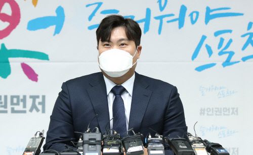 미국 프로야구 메이저리그 토론토 류현진이 3일 오후 서울 중구 국가인권위원회에서 언론 인터뷰를 하고 있다. 연합뉴스 |