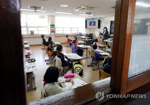 지난달 19일 오전 인천의 한 초등학교 1학년 교실에 학생들이 수업에 열중하고 있다. [연합뉴스 자료사진] |
