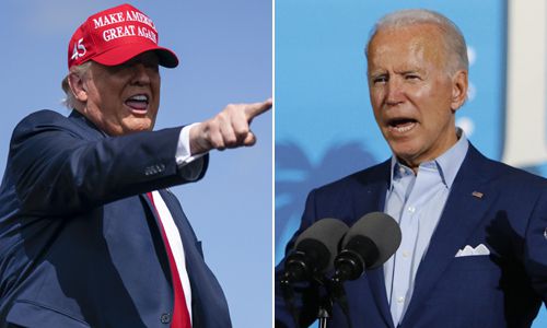 도널드 트럼프 대통령(왼쪽)과 조 바이든 민주당 대선후보. 탬파=AP연합뉴스 |