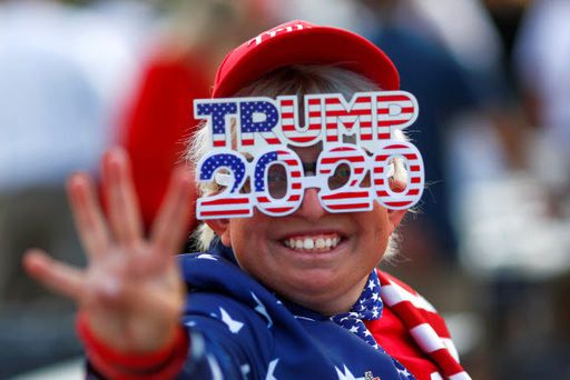 미국 대선을 하루 앞둔 2일(현지시간) 도널드 트럼프 대통령의 장남 도널드 트럼프 주니어가 참석한 애리조나주 스코츠데일의 유세장에서 한 지지자가 '트럼프 2020'이라고 새긴 안경을 쓰고 트럼프 대통령이 '4년 더' 집권해야 한다는 뜻으로 네 손가락 을 펼쳐 보이고 있다. 스코츠데일 로이터=연합뉴스 |