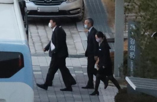 3일 오후 충북 진천군 법무연수원에 도착한 윤석열(왼쪽) 검찰총장이 신임 부장검사 30여명을 대상으로 강연을 하기 위해 이동하고 있다. 오른쪽은 배성범 법무연수원장. 진천=연합뉴스 |