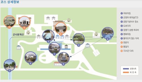 견학 참가자들은 자유의 집→T2(군사정전위원회 회의실)→2018년 남북 정상의 기념 식수 현장→도보다리→고 장명기 상병 추모비 순서로 둘러본다.
