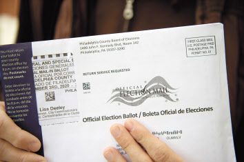 3일(현지시간) 미국 펜실베이니아주 필라델피아에서 한 유권자가 자신에게 배달된 우편 투표 용지를 들고 있는 모습. [EPA] |