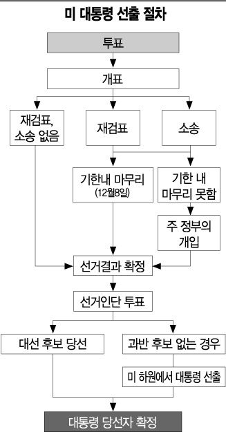 에드워드 폴리 오하이오대 로스쿨 교수는 "패한 쪽이 패배를 인정하고 승자를 축하할 때까지는 선거가 마무리되지 않는다"며 "후보들이 이런 최종적 결론을 내주지 않는다면 법적 절차를 밟게 될 수 있다"고 전망했다.
