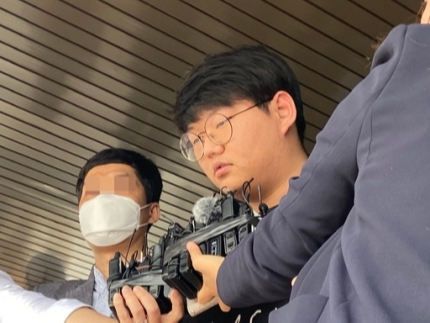 지난 5월18일 문형욱이 경북 안동경찰서에서 검찰로 송치되기 전 포토라인에 선 모습 |