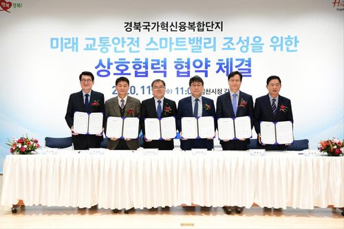 한국교통안전공단, 경북테크노파크, 구미전자정보기술원, 경북IT융합산업기술원, 경북하이브리드부품연구원, 경북자동차임베디드연구원 등 자동차 관련 6개 기관은 4일 김천시청에서 미래 교통안전 스마트밸리 조성 업무협약(MOU)을 체결했다.