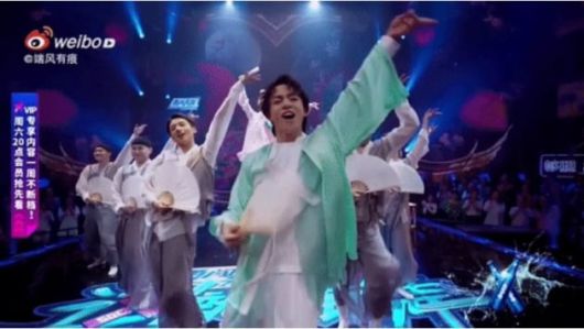 중국 예능 '저취시가무'에 등장한 참가자. 한복으로 보이는 의상을 입고 한국 전통춤을 추며 중국의 문화라고 소개했다. [저취시가무 캡쳐] |