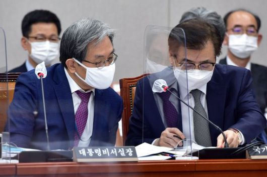 한편 이날 국감에서 여야 의원들은 더불어민주당의 내년 4월 서울·부산시장 보궐선거 후보 공천과 노영민 대통령 비서실장의 '8·15 광복절 집회 주동자는 살인자' 발언 등을 두고 갈등을 빚었다.