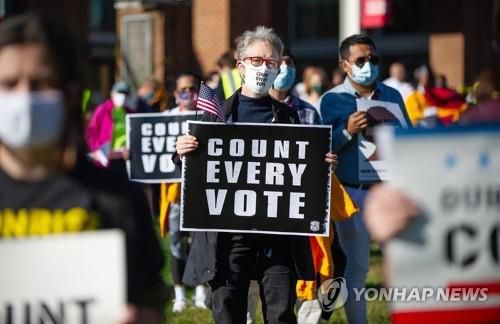 시위에서 트럼프 대통령 지지자들은 개표 중단을, 바이든 후보 지지자들은 빠짐없는 개표를 각각 주장했다.