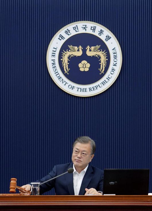 국무회의 개회하는 문 대통령 (서울=연합뉴스) 김주성 기자 = 문재인 대통령이 3일 오전 청와대에서 국무회의를 시작하며 의사봉을 두드리고 있다. 2020.11.3 utzza@yna.co.kr/2020-11-03 11:36:20/ <저작권자 ⓒ 1980-2020 ㈜연합뉴스. 무단 전재 재배포 금지.> |