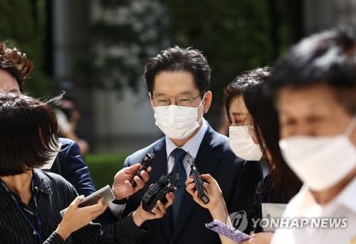 법원 출석한 김경수 지사 |