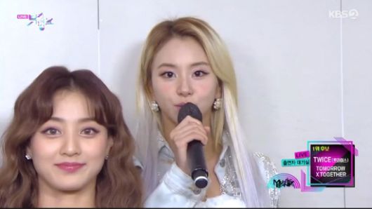 이날 트와이스는 'I CAN'T STOP ME'로 투모로우바이투게더와 함께 1위 후보에 올랐다. 채영은 1위 공약으로 "저희 노래에 '오' 부분이 있는데 저희가 그 부분을 짱구 버전으로 불러보겠다"고 했다.