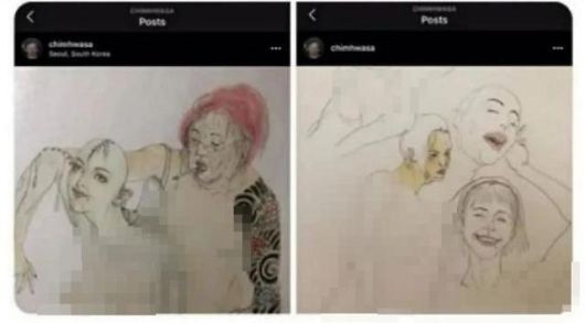 또한 침화사가 SNS에 올린 그림 속 여성이 채영이라는 주장도 나왔다. 해당 그림 속에는 나체로 된 여성의 모습이 담겨 있다. 특히 여성의 입술 밑에는 채영의 입술 밑 점과 똑같은 위치에 있어 게시자는 그림 속 여성이 채영이라고 주장하고 있다.