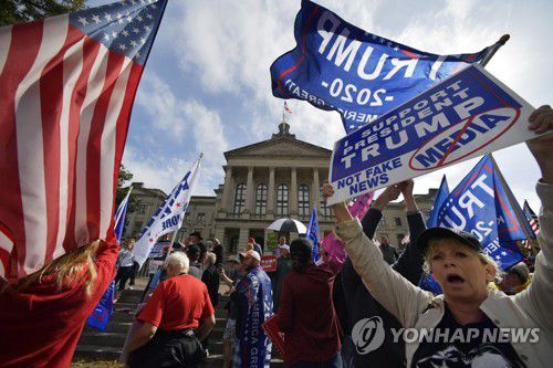 조지아 주의사당 앞 트럼프 지지 시위[로이터=연합뉴스] |