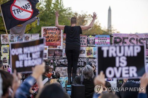 '트럼프는 끝났어' 팻말 든 백악관 인근 시위대 |