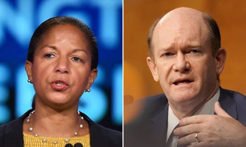 수전 라이스 전 국가안보보좌관(왼쪽)과 크리스 쿤스 상원의원. 연합뉴스 |