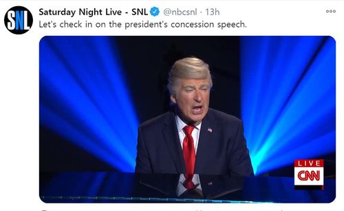 (로스앤젤레스=연합뉴스) 정윤섭 특파원 = 미국 NBC 방송의 간판 코미디 프로그램 '새터데이 나이트 라이브'(SNL)가 대선 결과에 승복하지 않는 도널드 트럼프 대통령을 조롱하는 방송을 내보냈다.