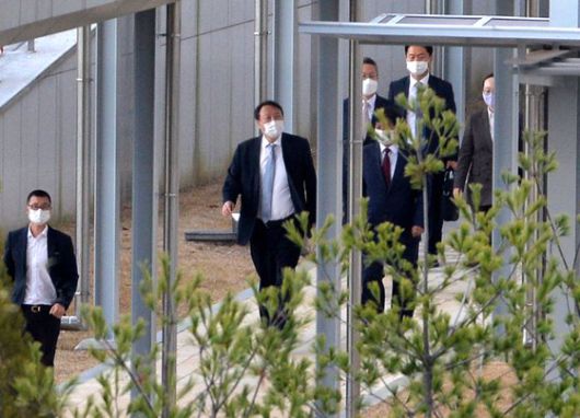 윤석열 검찰총장이 9일 오후 충북 진천 법무연수원에 도착해 강연을 하기 위해 이동하고 있다. 윤 총장의 이날 법무연수원 강연은 지난 3일 초임 부장검사들을 대상으로 한 강연에 이어 두 번째다. 프리랜서 김성태. |