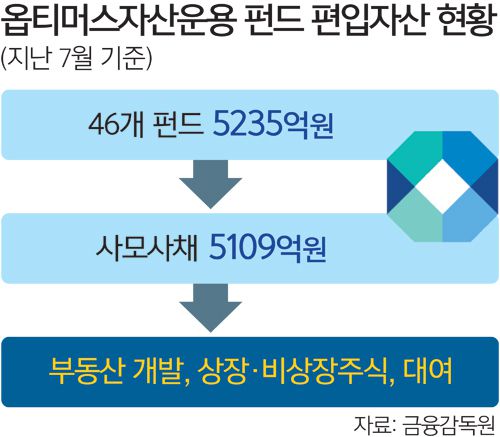 우울한 전망이 나오는 건 옵티머스가 펀드 자산으로 사모사채 등을 대거 편입했기 때문이다. 금융감독원의 옵티머스 펀드 중간 검사 결과에 따르면, 옵티머스 일당은 5235억원의 펀드 편입자산 중 5109억원(98%)을 씨피엔에스, 아트리파라다이스, 라피크 등이 발행한 사모사채를 사들이는 데 썼다. 이들 업체는 옵티머스 관련 인물이 이사나 대표로 올라 있는 옵티머스 관계회사다. 펀드 자금은 해당 업체를 거쳐 상장·비상장주식 투자, 부동산 개발사업 투자, 로비자금, 개인 자금 등으로 쓰였다.