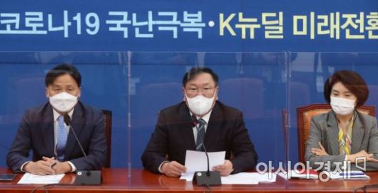 김태년 더불어민주당 원내대표가 10일 국회에서 열린 원내대책회의에 참석, 모두발언을 하고 있다./윤동주 기자 doso7@ |